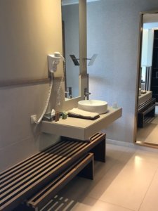 Wer in der Nebensaison (November bis April) unterwegs ist, kann hier von sehr günstigen Übernachtungspreisen profitieren. Ich habe mir auf meiner Wanderung deshalb das 5-Sterne-Hotel Vidamar Algarve gegönnt (Link: Vidamar Algarve). Die großzügigen Zimmer mit der etwas extravaganten Badgestaltung haben mir sehr gut gefallen.