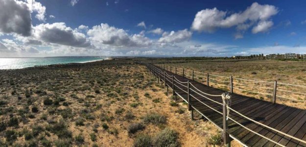 Der Strand Praia dos Salgados liegt ungefähr in der Mitte zwischen Albufeira und Armação de Pêra und ist für die Algarve eher untypisch flach: der recht einsame Sandstrand wird von Dünen und der nahen Salgados-Lagune geprägt. Über Holzstege gelangt man zu Vogel-Beobachtungs-Stationen und den Hotels und Apartments, die einige hundert Meter Abstand zur Küste halten.